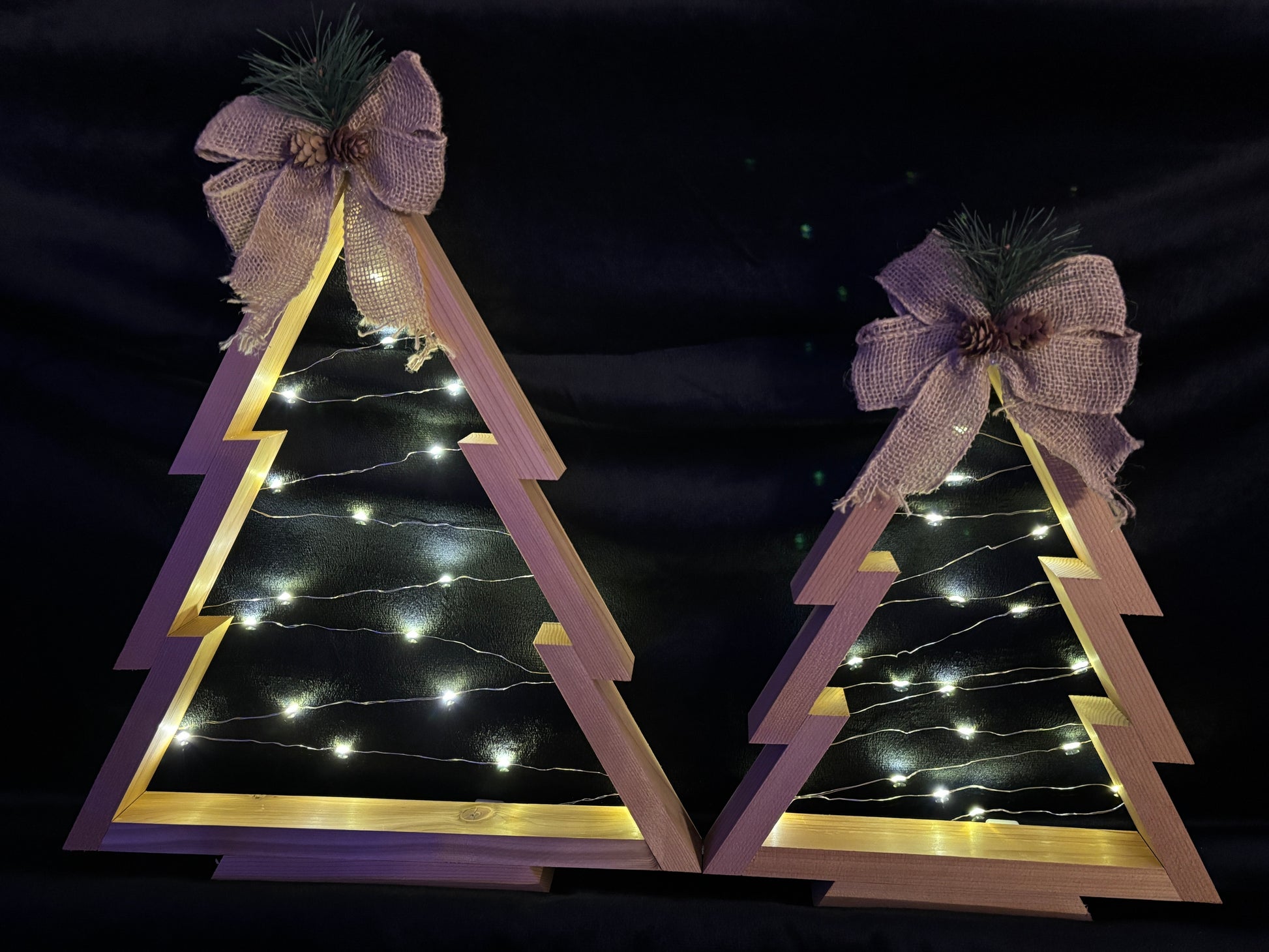 Beautiful lighted trees made of cedar. Choose from Multi colored fairy lights or soft white fairy lights. They come in 2 sizes to fit perfectly into any space.